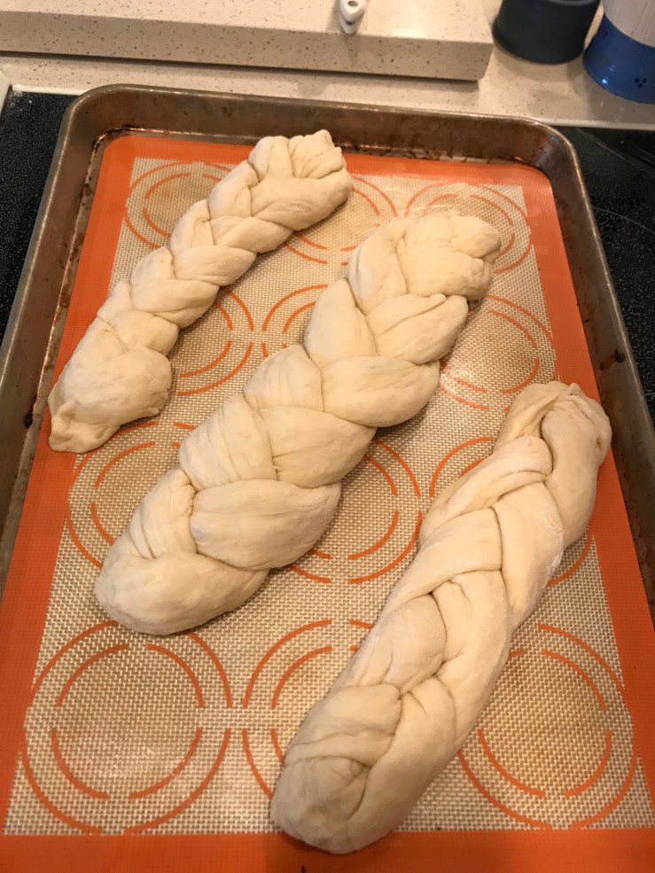 - Braid the dough on a greased cookie sheet