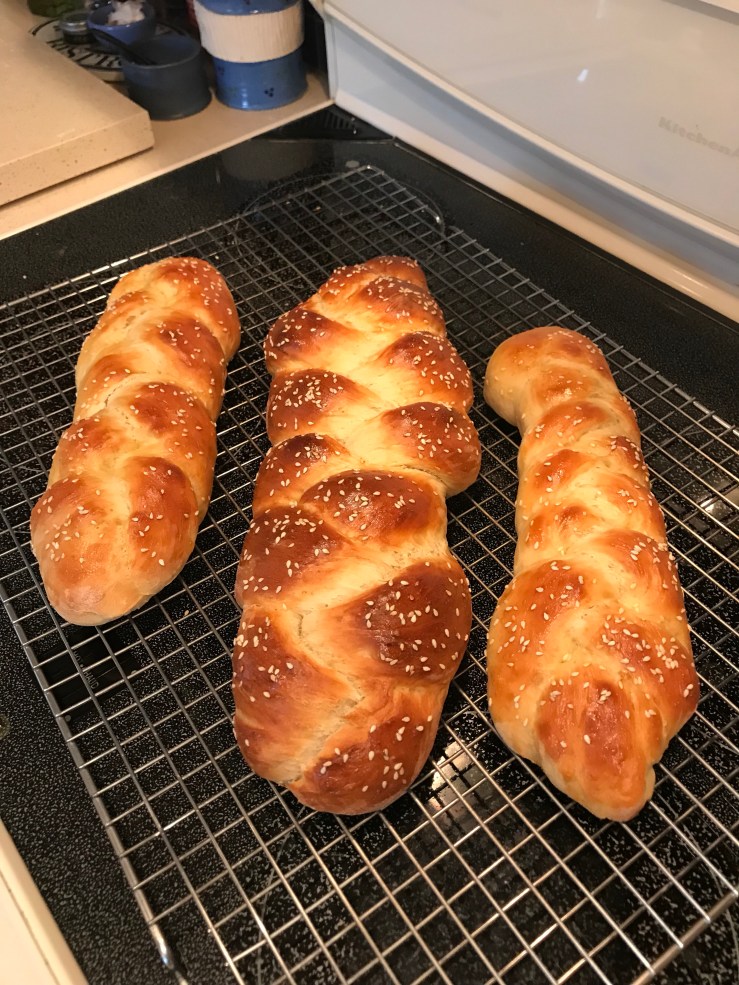 I’m getting addicted to this. Couldn’t help myself. Today I made Challah for some special family members. So easy! I’ll post the recipe below.